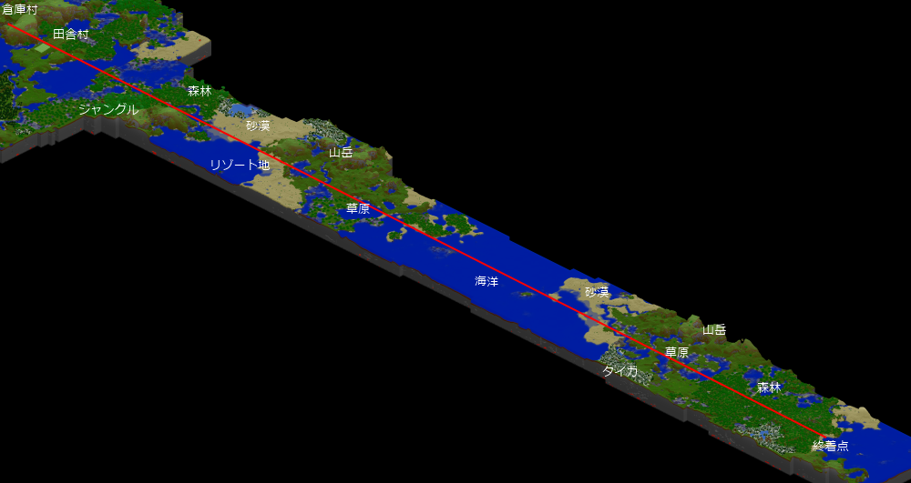 そして左側の森林地帯を抜けると本格的な海洋バイオームに突入
